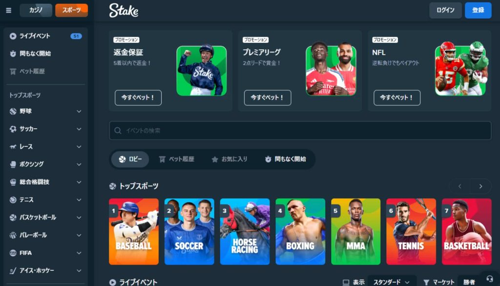 ステーク(Stake)は2021年に日本市場へ参入したブックメーカーサイトです。仮想通貨決済に特化しているのが最大の特徴で、この仮想通貨決済ではビットコイン・イーサリアムをはじめ、その他複数のアルトコインが決済に対応しています。もし仮に仮想通貨を所有していなくても、法定通貨を利用した決済も提供されていて代わりに使うこともできます。また、ウォレットで通貨毎に残高表示ができ、視覚的に残高把握できるのもメリットです。