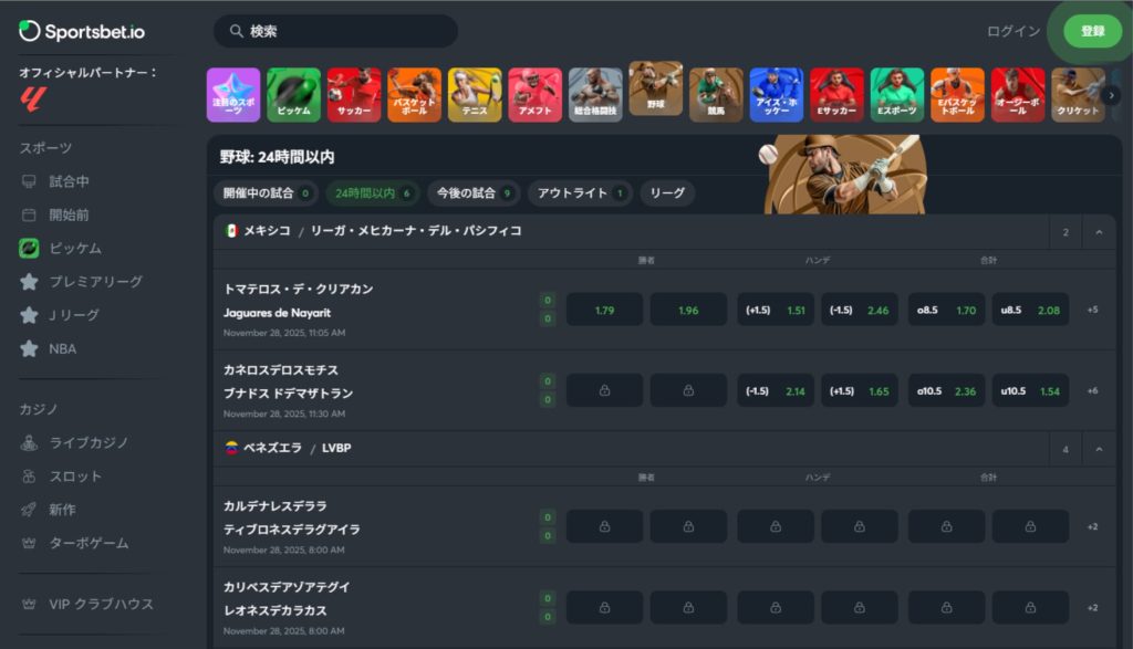 スポーツベットアイオー(Sportsbet.io)は2016年に創立されたブックメーカーサイトです。スポーツベットに特化しており、黒と緑の差し色が映えるサイトデザインが特徴です。他サイトと比較したときに同じ対象のオッズが高く設定されていることや、対象である場合にオッズの引き上げが可能となる独自機能が利用できるなど、リターン額を少しでもアップしたいと考えているプレイヤーにはおすすめしたいブックメーカーサイトとなっています。