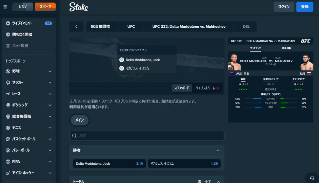 大会名 | UFC 322 ~デラ・マダレナ 対 マハチェフ~ |
